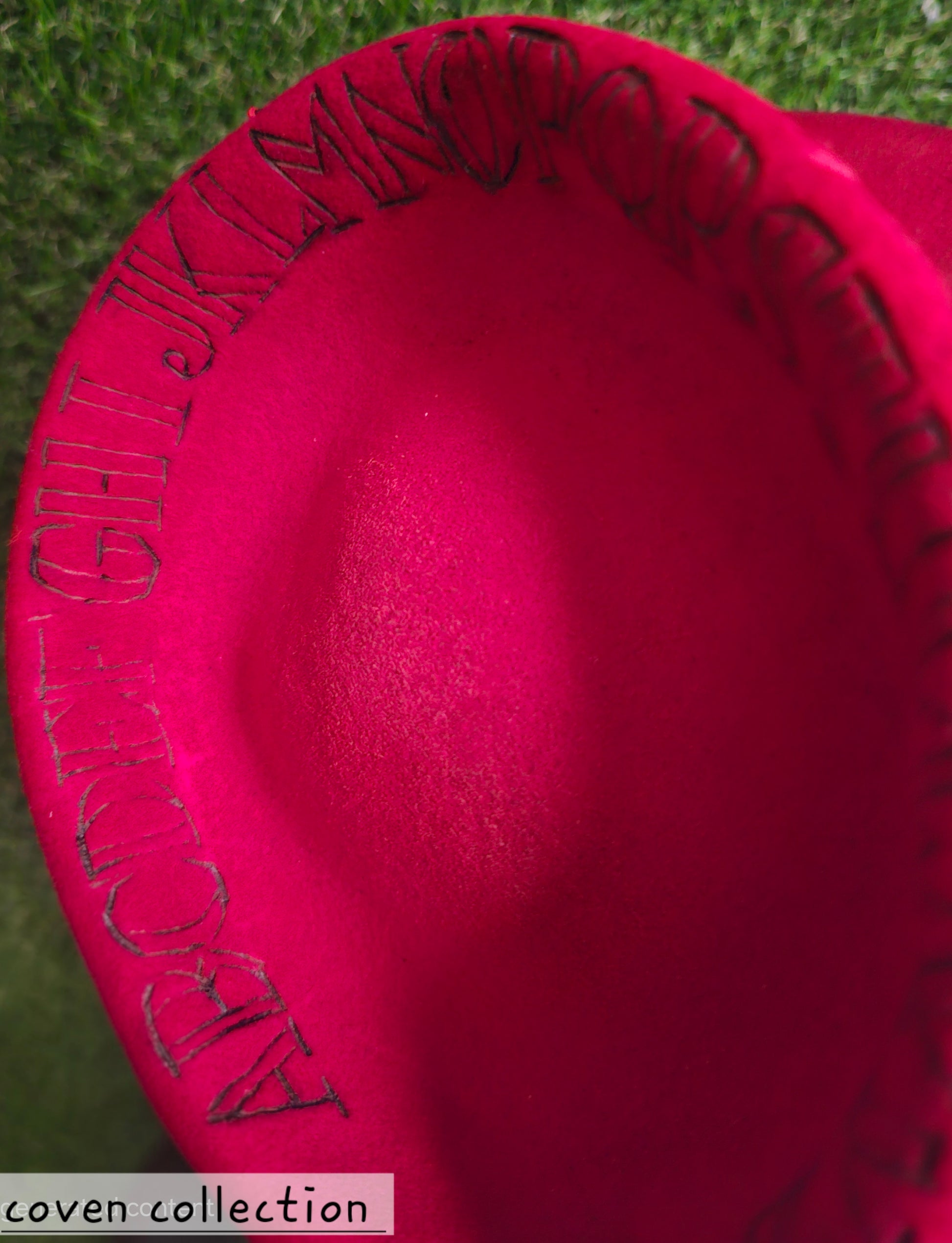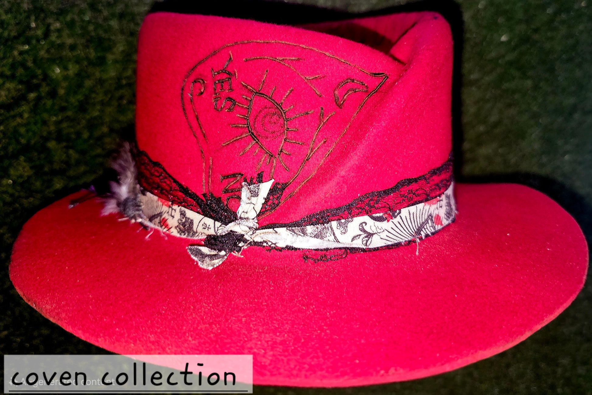 Step into the mystical with the Welcome Protection hat from our Coven Collection. Designed in vibrant red, this hat blends bold style with a sense of guarded energy, perfect for those who value both fashion and a touch of spiritual safeguarding. Let its captivating presence accompany you, making a statement while offering a subtle aura of protection. Elevate your look with a hat that’s as intriguing as it is powerful.